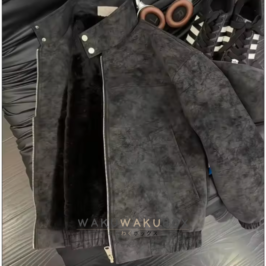 アメリカンスタイル染めPUレザージャケットメンズ春秋大きいサイズクリーンフィットスタンドカラージャケットクールショルダートップシャツ